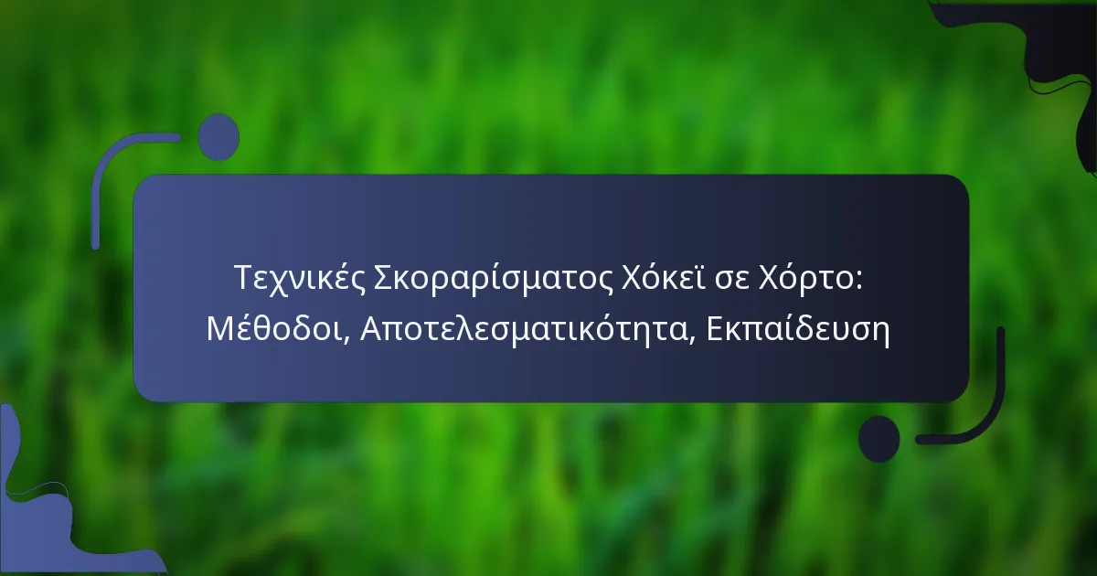 Οι τεχνικές σκοραρίσματος στο χόκεϊ χόρτου είναι απαραίτητες για τους παίκτες που επιθυμούν να ενισχύσουν την ικανότητά τους να σουτάρουν την μπάλα στο τέρμα αποτελεσματικά. Με την κατάκτηση διαφόρων μεθόδων, οι παίκτες μπορούν να βελτιώσουν σημαντικά το σκοραρίσματος τους και τη συνολική απόδοση της ομάδας. Η κατανόηση της αποτελεσματικότητας αυτών των τεχνικών, που επηρεάζεται από το επίπεδο δεξιοτήτων και τη δυναμική του παιχνιδιού, είναι κρίσιμη για την βελτιστοποίηση των ευκαιριών σκοραρίσματος. Οι στοχευμένες μέθοδοι εκπαίδευσης που αναπτύσσουν τις ατομικές δεξιότητες και τις στρατηγικές της ομάδας συμβάλλουν περαιτέρω στην επιτυχία του σκοραρίσματος στους αγώνες.