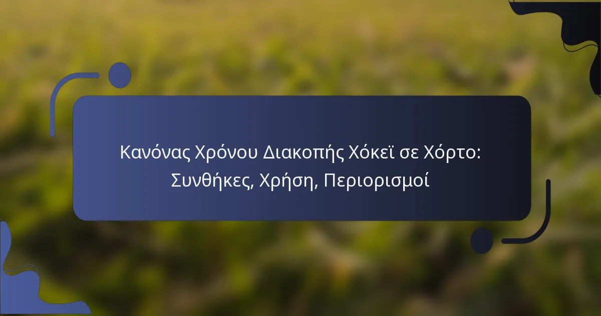 Ο κανόνας του time-out στο χόκεϊ επί χόρτου έχει συγκεκριμένους περιορισμούς που οι παίκτες και οι προπονητές πρέπει να κατανοήσουν για να τον χρησιμοποιούν αποτελεσματικά. Συνήθως, οι ομάδες επιτρέπεται να ζητούν περιορισμένο αριθμό time-outs ανά παιχνίδι, και η κακή χρήση μπορεί να οδηγήσει σε ποινές που επηρεάζουν την ροή του παιχνιδιού. Η κατανόηση αυτών των συνθηκών μπορεί να ενισχύσει τη στρατηγική λήψη αποφάσεων κατά τη διάρκεια των αγώνων.